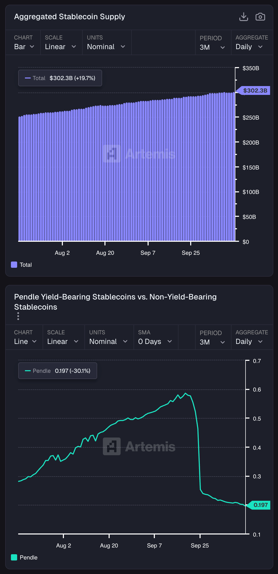 Stablecoins are at the heart of Pendle’s growth story. With aggregate supply climbing to over $300B and a rapidly rising share of yield-bearing stablecoins, Pendle has positioned itself as the key venue to tokenize and trade this yield. By capturing the shift from passive stablecoin holding to active, yield-generating formats, Pendle is tapping into one of the largest and most consistent liquidity bases in crypto. This make stablecoins the backbone of its long-term TVL and revenue expansion.
